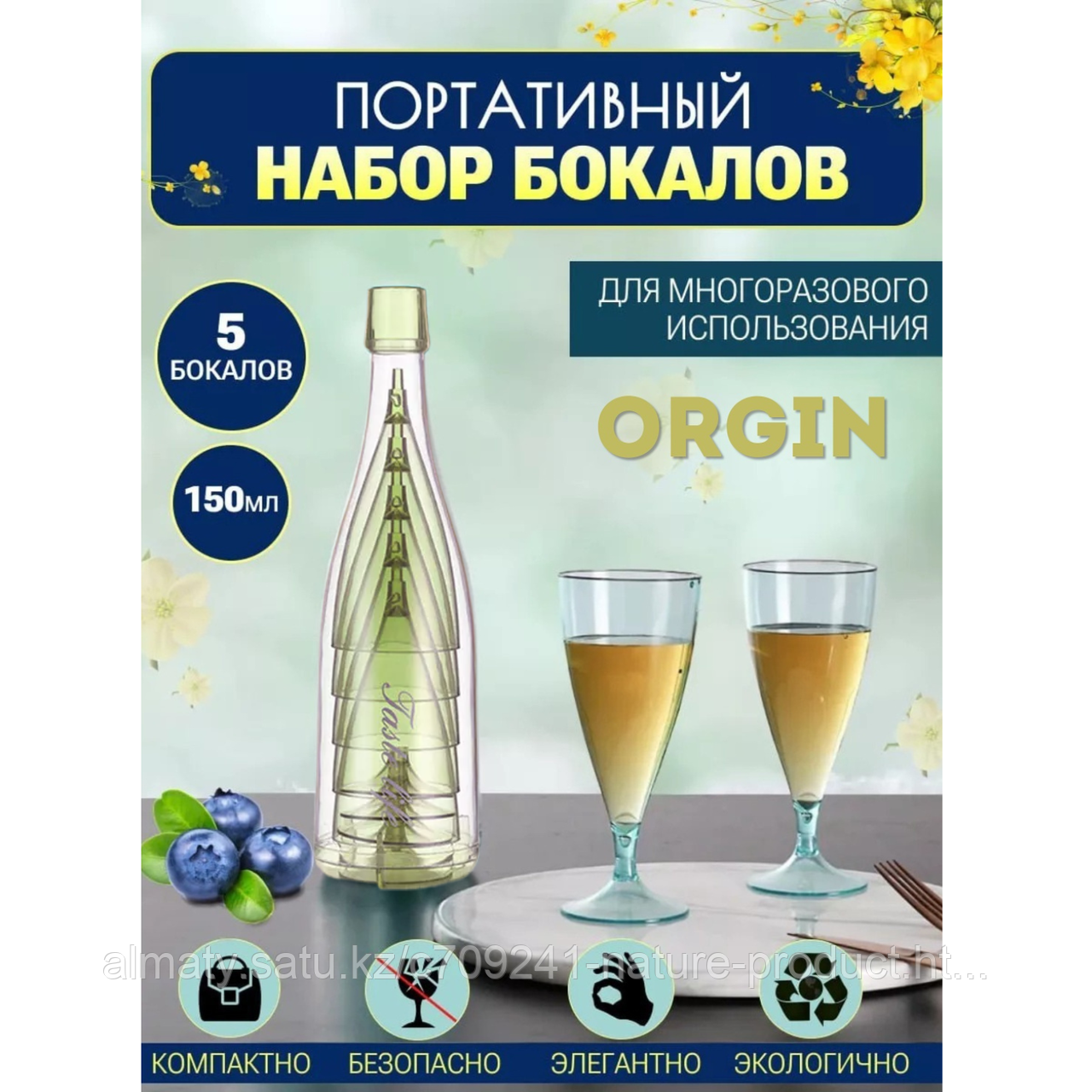 Набор бокалов в бутылке зеленый 5 бокалов в 1 ORGIN