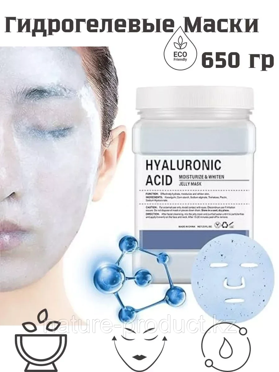 Способствует синтезу коллагена, сохраняя эластичность и упругость кожи. За счет увлажняющих компонентов придает коже глянцевый и свежий вид.Альгинатная гидрогелевая электролитная маска HYALURONIC ACID MASK нормализует уровень гиалуроновой кислоты в коже, тем самым затормаживая возрастные процессы старения кожи. Гиалуроновая кислота (гиалуронат натрия.)Маска с гиалуроновой кислотой глубоко увлажняет и улучшает эластичность кожи, удерживая воду в 1000 раз больше своего веса. Гиалуроновая кислота является основным компонентом кожи и важным элементом восстановления тканей!